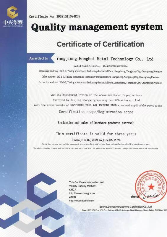 廣東宏惠金屬公司是家20多年一直專注鉆尾螺絲開發(fā)與生產(chǎn)的企業(yè),是國內(nèi)較早做鉆尾的廠家之一,同時也是國內(nèi)專業(yè)開發(fā)生產(chǎn)鉆尾螺絲的企業(yè)之一。 我司地址為于廣東省陽江市江銀嶺科技園距沈海高速白沙出口不到2公里,距陽江高鐵站也只有十余公里交通便利。 公司占地120畝,擁有超500臺套專業(yè)設(shè)計 生產(chǎn) 檢測設(shè)備。一個超200人的專業(yè)團(tuán)隊,能夠嚴(yán)格按照ISO9001質(zhì)量體系要求生產(chǎn)符合GB DIN AS3566 ANSI JIS BS等標(biāo)準(zhǔn)的產(chǎn)品,生產(chǎn)銷售各種高品質(zhì)緊固件系列產(chǎn)品,為中高端客戶提供優(yōu)質(zhì)服務(wù)。也可按照客戶要求設(shè)計生產(chǎn)各種鉆尾,年產(chǎn)高品質(zhì)碳鋼 不銹鋼鉆尾螺絲2萬余噸.在各大客戶的鼎力支持下產(chǎn)品暢銷全國,并遠(yuǎn)銷亞 非 拉 歐等地,在這20多年發(fā)展的道路上我司堅持“以質(zhì)量求生存,以信譽求發(fā)展”的精神理念不斷完善公司體系。